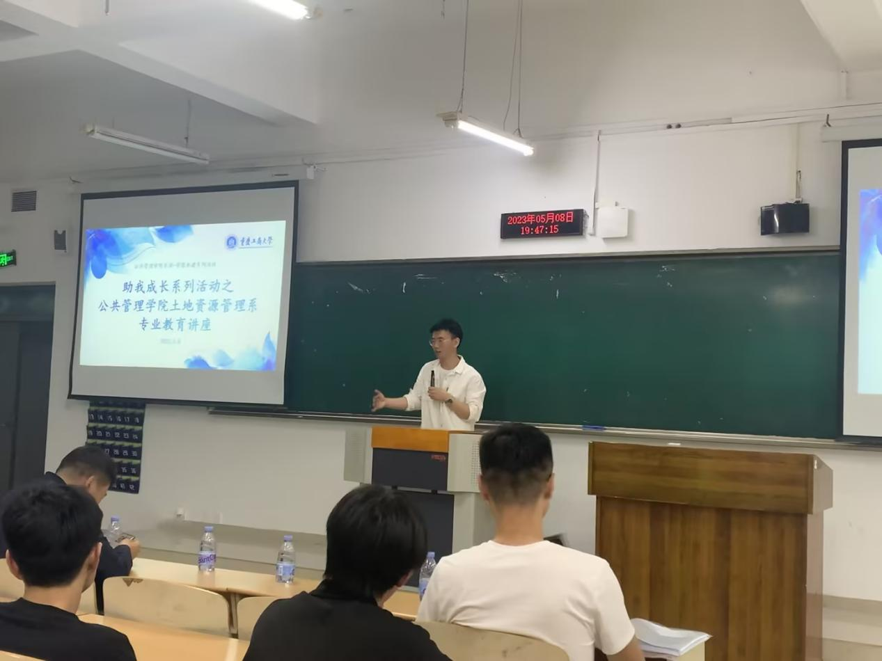 当前位置: 首页 >> 学团工作 >> 正文 【助我成长系列活动】土地资源管理系专业教育讲座顺利开展 时间:2023年05月09日 15:14 作者: 李恒 为促使同学进一步了解自己的学科专业,2023年5月8日,学院在博智楼07222举行助我成长系列活动之土地资源管理系专业教育讲座。副院长代富强、土地资源管理系主任王兆林、副主任杜挺、教师代表陈帅、辅导员李恒及土地资源管理专业同学参加了此次活动。 活动邀请18级土管专业优秀毕业生江桂兰、19级考研上岸同学张增光分享成长经历。辅导员李恒鼓励在座同学珍惜时间,科学规划学业,认定目标笃定前行。王兆林及专业课老师就本专业的相关学习重点、就业形势以及考研报考院校等问题进行深入交流。活动最后,代富强结合自己的人生经历对活动进行总结,并指出没有谁的一生是一帆风顺的,每个人都会遇到许许多多的波折,但大家需要做的就是破除迷雾,找到属于自己的前方。 此次活动的开展,不仅促进师生交流,开阔了同学们的视野,提升大家学习热情,更是给同学们带来了新的启迪与思考,有助于学生认清当前形势,强化专业认同感,夯实专业基础,提高综合素质,树立正确的人生目标和就业观念。 上一条:【访企拓岗专项行动】彭勇书记带队走访重估协 下一条:【主题教育】122cc太阳集成游戏召开2023届毕业生就业促进调研会 【关闭】
