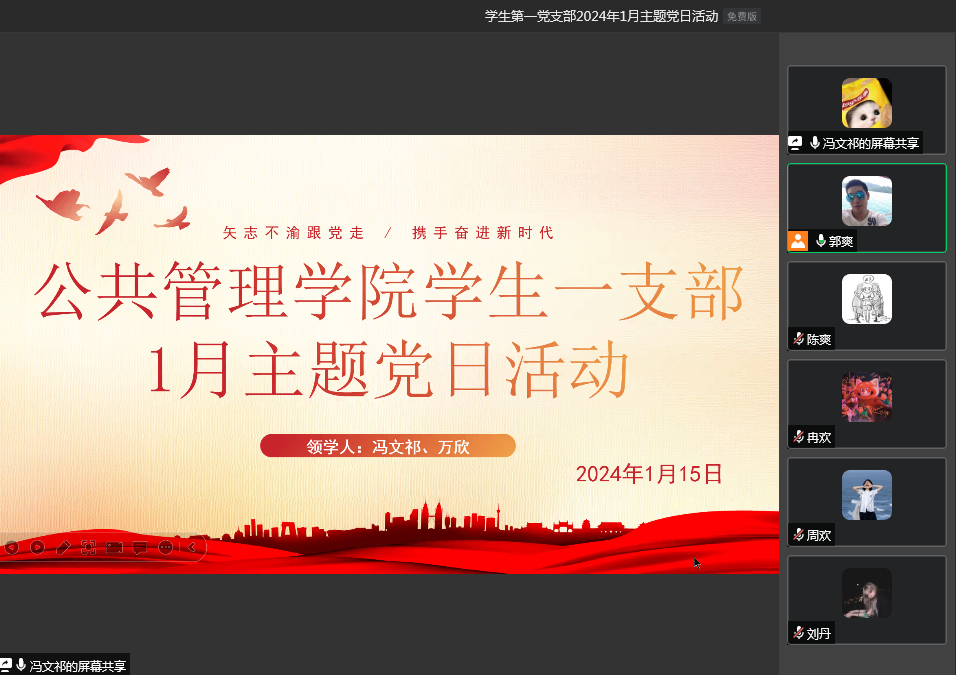 当前位置: 首页 >> 党建双创 >> 主题党日活动 >> 正文 122cc太阳集成游戏学生第一党支部召开2024年1月主题党日活动 时间:2024年01月15日 18:51 作者: 郭爽 2024年1月15日,122cc太阳集成游戏学生第一党支部开展了主题党日活动。本次活动由支部书记郭爽同志主持。 会上,首先是由冯文祁、万欣两位同志领学了《习近平在视察武警海警总队东海海区指挥部时的重要讲话精神》《习近平在12月6日党外人士座谈会上的重要讲话精神》《习近平在接见参加2023年度驻外使节工作会议的全体使节时的重要讲话精神》等学习内容。而后在“党课我来讲-党史小故事分享”活动中,伍燕玲同志讲述了志愿军烈士、毛泽东同志的长子——毛岸英同志的故事。 最后,支部书记郭爽带领支部各同志学习了习近平主席二〇二四年新年贺词并做总结讲话。他指出,回首过去一年支部取得的荣誉,离不开全体同志的共同努力,新的一年,希望各位同志继续坚定不移、坚持不懈地学习,做到常学常新、常学常进,同时,希望各位同志自觉强化责任担当,夯实支部建设基础工作,为新年启航开新局。 上一条:122cc太阳集成游戏学生二支部 召开2024年1月主题党日活动 下一条:122cc太阳集成游戏学生第一、第二党支部参观重庆抗战遗址博物馆 【关闭】