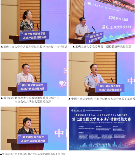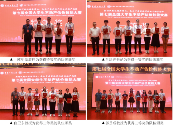 当前位置: 首页 >> 学院新闻 >> 正文 122cc太阳集成游戏、创新创业学院联合承办的第七届全国大学生不动产估价技能大赛决赛在我校成功举办 时间:2023年07月28日 16:18 作者: 7月22-23日,为期两天的第七届全国大学生不动产估价技能大赛决赛在太阳成集团tyc122cc成功举行。来自全国各地各高校的48支参赛队伍,300余名师生“约价”重工商,论剑南山下。学校党委常委副校长赵骅为比赛开幕式致辞,国务院学位委员会公共管理学科评议成员、教育部公共管理类专业教学指导委员会副主任、南京农业大学欧名豪教授,中国土地估价师与土地登记代理人协会王军会长、学校教务处处长骆东奇等领导和嘉宾全程出席了本次大赛。大赛开幕式、主旨报告和闭幕式等环节分别由李孜院长、骆东奇处长和代富强副院长主持。大赛期间,为推动学院学科建设、专业建设和人才培养,举办了面向中国式现代化的不动产估价改革暨土地资源管理国一流专业建设研讨会。 本届大赛由教育部高等学校公共管理类学科专业教学指导委员会主办,全国高校土地资源管理院长(系主任)联席会、中国土地估价师与土地登记代理人协会及中国房地产估价师与房地产经纪人学会指导,太阳成集团tyc122cc,122cc太阳集成游戏,122cc太阳集成、太阳成集团tyc122cc创新创业学院及重庆市国土资源房屋评估和经纪协会联合承办。 本届大赛于2023年3月开赛,以“新时代新征程新伟业,面向中国式现代化的不动产估价”为主题。共计收到全国66所高校提交的115份有效参赛作品。决赛经过48只队伍两轮激烈角逐,最终评出特等奖4名,一等奖8名,二等奖16名,三等奖20名。我校122cc太阳集成游戏三支参赛队伍成绩进入决赛,斩获特等奖1项,二等奖2项。其中,由杜挺、肖轶及王兆林老师指导的《重庆市渝北区SC村闲置教育用地发展权价值评估》获特等奖。 ▲ 第七届全国大学生不动产估价技能大赛决赛合影 大赛决赛阶段,内容丰富,精彩纷呈。高校、行业机构专家齐聚一堂,围绕不动产估价高质量发展展开激烈讨论,为培养面向中国式现代化的土地资源管理专业人才方式出谋划策。各参赛队伍铆足劲头,尽展青衿之志。 多方相聚 共襄盛举 7月22日上午,决赛开幕式在7200学术报告厅举行,教育部公共管理类学科专业教学指导委员会、中国土地估价师与土地登记代理人协会、中国房地产估价师与房地产经纪人学会及重庆市国土资源房屋评估和经纪协会等高校、机构的嘉宾及参赛队伍参与。太阳成集团tyc122cc党委常委、副校长赵骅教授,国务院学位委员会公共管理学科评议成员、教育部公共管理类专业教学指导委员会副主任、南京农业大学欧名豪教授,中国土地估价师与土地登记代理人协会王军会长及中国房地产估价师与房地产经纪人学会王霞副秘书长分别致辞。多方专家认为,全国大学生不动产估价技能大赛是面向中国式现代化目标的优质学科竞赛平台,可以构建起高校与行业机构之间沟通的桥梁,促进产-学-研的深度合作,并均表示愿意尽己所能,推动赛事不断发展,共同推进土地资源管理学科专业发展和人才培养工作。 群星璀璨 共话发展 为什么土地需要估价?自然资源资产如何估价?如何做一名优秀的估价师?在主旨报告环节,来自研究院、高校以及估价行业专家学者围绕“面向中国式现代化的不动产估价”主题传经送宝。 中国农业大学土地科学与技术学院副院长朱道林教授以“土地价格评估:市场的判断”为题,从认识土地价格、价格的影响因素、价格如何评估等方面作详细讲解。中国国土勘测规划院研究员、全国政协委员赵松以“自然资源的价值与价格”为题作主旨报告。她表示,估价行业有着巨大发展空间,未来还要积极探索深入研究。西南大学地理科学学院院长杨庆媛教授从问题导向、理论认识、激励体系构建等方面全面阐释了耕地保护补偿体系构建。智地平台执行总经理徐进亮博士细致分析了估价行业发展的新趋势和新领域,他认为,高校师生应顺应时代,不断进行思维重构、专业重建,创行业新高。重庆同诚房地产土地资产评估有限公司副总经理贾娟女士结合多年从业经验,分享了不动产估价员应遵循的职业素养。 百舸争流竞上游 春风化雨明道理 7月22日下午,第一轮决赛开始。48支参赛队伍分四个赛场“秀功夫”,每个赛场前三名,共12组进入第二轮决赛。 7月23日上午,第二轮决赛拉开帷幕,比赛进入白热化阶段。陈述、提问、质疑、解答……总决赛现场,12支队伍两两分组,现场辩论。决赛分为作品展示和专家点评两个环节。在作品展示环节,12支队伍围绕估价目的、估价对象、价格影响因素分析、估价思路及方法选择、估价过程、相关参数确定等进行作品展示。 赛后,高校代表中国人民大学房地产税评估研究中心主任曲卫东教授、行业机构代表正步联行土地房地产资产评估有限公司杨正刚总经理对决赛进行点评。曲卫东教授认为本次大赛是课堂教学的延展,实现了理论和实践的有机结合,各高校的师生互学互鉴,能够有效促进课堂教学质量的提升。他希望,未来,大赛在形式上能有更多创新。杨正刚总经理指出,本次大赛中,专家们分享最新研究成果及估价行业发展新思路,参赛队伍展现扎实专业知识,作品覆盖面广,为行业发展提供理论支撑。 雏鹰展翅博长空 载誉而归喜开颜 7月23日下午,第七届全