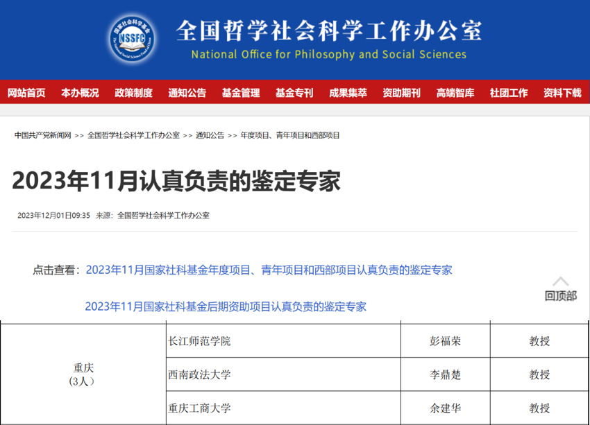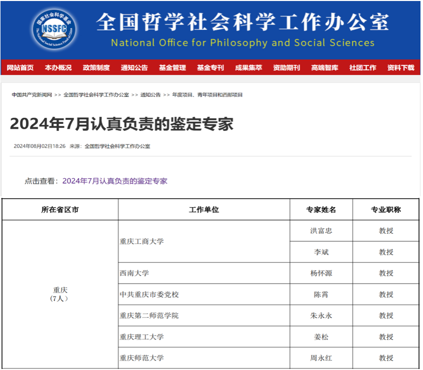 当前位置: 首页 >> 学院新闻 >> 正文 我院多位教师获评国家社科基金 “认真负责的鉴定专家” 时间:2024年09月06日 16:31 作者: 近日,全国哲学社会科学工作办公室公布了2024年8月国家社科基金项目“认真负责的鉴定专家”名单,我院李斌教授名列其中。这是继李斌教授今年7月获得全国哲学社会科学工作办公室“认真负责的鉴定专家”之后,再次登上荣誉榜。除李斌教授外,去年11月,我院余建华教授也曾获此殊荣。 据悉,为切实提高国家哲学社会科学研究成果的水平和质量,保证鉴定工作的客观性、公正性和公平性,全国哲学社会科学规划办公室对结项工作采取通讯评议制度。承担结题成果鉴定的专家应当按照要求履行鉴定职责,其中鉴定态度非常认真负责、评价意见客观中肯、写出高水平鉴定意见的专家将被记入全国哲学社会科学规划办公室“成果鉴定工作认真负责的专家档案”。 近年来,我院多位教师承担并认真完成全国哲学社会科学工作办公室委托的多项课题鉴定和评审等工作,工作成效显著。该荣誉反映了全国哲学社会科学工作办公室对我院评审专家良好专业素养、严谨治学态度和学术评价水平的肯定,在一定程度上进一步提高了我院哲学社会科学研究的学术影响力和科研知名度。 上一条:学校党委书记曾维伦教授带队慰问全国优秀教师王兆林教授 下一条:我院教师应邀参加2024中国-东盟教育交流周之“2024国际产学研用合作会议数据科学应用与创新发展”活动 【关闭】