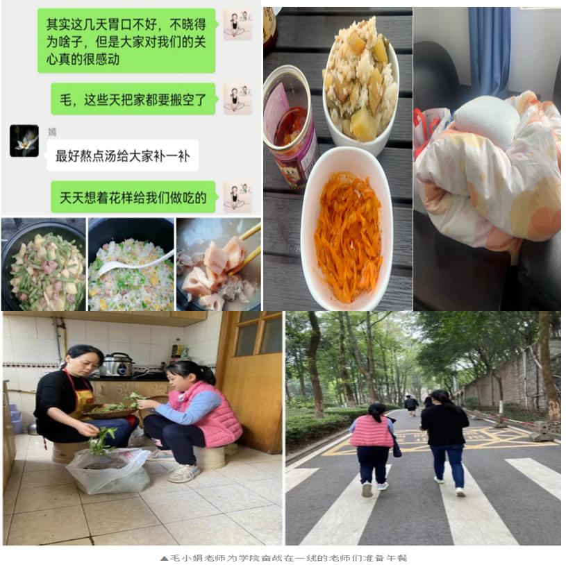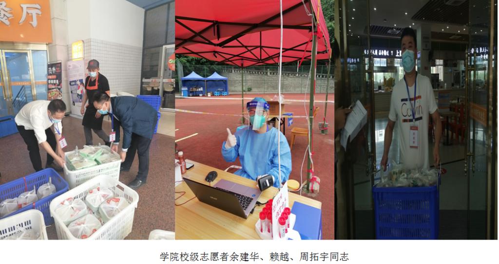 当前位置: 首页 >> 党建双创 >> 正文 【“疫”路同心,一路同行】“疫”路同心 一路同行——记122cc太阳集成游戏志愿者队伍 时间:2022年10月20日 08:14 作者: 2022年10月11日凌晨,因新冠肺炎疫情来袭,学校立即实行临时管控。学院党委积极响应校党委号召,10月12日清晨学院在教职工及学生发出志愿者征集通知,全院师生积极响应,踊跃报名参与疫情防控志愿工作。经学院领导小组进行统筹安排,先后向学校推荐5位老师作为校级志愿者(3位成行),同时在学院组建校内抗疫一线、外围保障、学生楼栋服务、紧急备用等不同类型的师生志愿者队伍。 坚实守护:校级志愿者——抗疫中最坚硬的铠甲 “你们是学校抗疫一线最坚硬的铠甲,你们用最果敢的行动、最温软的内心呵护校园的一片宁静”。抗疫过程中,我院先后成功向学校推荐有部队经历赖越、周拓宇及学院副院长余建华等3名党员同志,参加由学校统一调用的志愿者服务队伍。 赖越同志在本次疫情发生前,已作为志愿者,参与到学校的日常核酸检测之中,维持检测队伍秩序、录入师生检测信息……在疫情刚开始时,为解决后顾之忧,支持丈夫进入校内抗疫一线,妻子毫不犹豫带着年幼孩子去上班(市内中学教师),匆匆安顿家庭生活,第一时间向学院申请,并顺利投入到学校抗疫工作中去,担任核酸检测员。面对要求高、强度大的核检志愿者工作,他并没有抱怨,全身心地投入到工作之中,扫码登记、提醒同学保持间距、根据实时人流量引导师生至合适的检查点……一句话、一个动作,重复了无数遍,他很快成为了“熟练工”,在一日工作的微信圈中他骄傲地发了一则信息:战斗四天,成功晋级,“蓝朋友”变“大白”。赖越同志在一线战“疫”中迸发出的乐观主义与浪漫主义精神,令人动容。他默默奉献,乐于助人,在学校的志愿工作忙完后,又回到学院里面,任何情况下他都愿意“冲上去、扛下来、举起走”,忙完所有的事情一个人又默默地在走廊、在过道,悄悄给妻子打电话,关心家人的情况。 周拓宇同志在校级志愿者服务队伍中,被分配到为管控区的学生配送食物,作为学校为学生送餐队伍中的一员,他每天总是提前到达食堂配餐处,试餐、搬运、送餐,学生的一日三餐都是由他们协助餐饮服务人员打包、装箱,搬运到运餐车上。他自称是学生“胃”您着想、“肠”您所愿的“三餐守护者”。每天忙碌完,总是最后一个回学院吃饭的,饭菜凉了,说给他热一下,他总是说:有什么吃什么。总是匆匆吃上几口,又去帮忙其他同事完成院内事务。 周拓宇和赖越两位同志,“退役不褪色”,“疫”线显担当,在志愿工作中充分体现了“特别能吃苦、特别能战斗、特别能奉献”优秀品质。 学院副院长余建华同志,被分配到餐饮质量核检及配送工作中,每天清晨到岗检查菜品质量和分量、餐前对每个菜品进行品尝、协调学生楼栋、进行送货、帮忙送饭上车……在疫情管控期间,余建华同志还有为学生上课的任务,每次他下课后都是急匆匆小跑到食堂参与配送工作。学院新闻采集的同志感慨道:想给余院长拍几张工作照片,但是他连摆个Pose的时间都没有,只好抓拍了几张。 我院参加校级志愿者3位同志,他们是我们学院党员中的优秀代表,他们为同学们筑起温暖的堡垒,他们以实际行动证明了——他们是抗疫中最坚硬的铠甲。 青春力量:你们是最青春靓丽的一道风景线 “岁月因青春慨然以赴而更加静好,世间因少年挺身向前而更加瑰丽”,封控期间,同学们足不出户,疫情的阴霾笼罩着校园,由学生党员、入党积极分子为主体组建的122cc太阳集成游戏的青年志愿者,他们扛起重任,当起主力,迸发出了磅礴的青春力量。 楼管会的志愿者们,他们提醒同学们做核酸和领饭,积极协助负责老师和辅导员,为同学们送菜送饭,检查饭菜质量,维护核酸和用餐秩序,做好记录,做到不漏一人,不丢一人,为同学们带去问候;2020级公共管理的学生曾洁和万欣,两个瘦弱的小女生看起弱不禁风,作为学院主体楼栋楼长,在抗疫紧要关头,面对为同学发饭、督促大家做核酸、调解楼栋同学情绪这些琐碎小事上从来不含糊,为提高工作效率,在实际操作中不断优化工作程序。 他们逆着人群而行,向着图书馆方向前进,回来时,他们手拿行李箱,装载着考研的同学们的希望,他们拖着重重的书本奔赴新北22-24楼栋,为努力备战心中焦急的同学们送去温暖。 “夜暗方显万颗星”,他们在抗疫一线不辞辛苦,不求回报,热情洋溢,无私奉献,面对危险无所畏惧,面对困难毫不退缩,面对挑战勇往直前,不论在哪个岗位,他们都在用行动诠释着青春的力量,始终与学校同心抗“疫”!充分展现了他们青春该有的模样,成为校园中是最青春靓丽的一道风景线。 勇者不孤:我们拥有最强大的志愿者后勤队伍 “你们在前方抗击疫情,我们在后方温暖守护”。有这样一对抗疫“夫妻档”, 他们的家在校内家属区,妻子毛小娟,是122cc太阳集成游戏的一名普通行政人员,丈夫胡磊是体育学院一名普通专任教师,在学校疫情狙击关键期,他们没有选择“宅”在家里,而是主动请缨,毅然投身于这场抗“疫”狙击战中,毛小娟老师选择加入了公管院级志愿者,胡磊老师作为校级志愿者被安排在管控最严格的新北24栋负责防控工作,他们奔忙在抗疫一线,服务于管控区的师生。他们是彼此最坚强的后盾,同心抗疫,共克时艰。 “