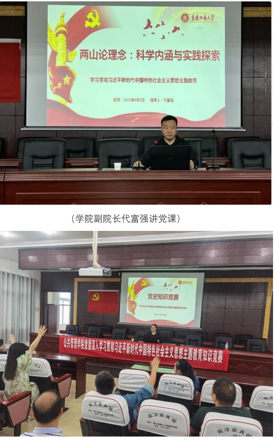 当前位置: 首页 >> 党建双创 >> 正文 【主题教育】传承红色基因,助力乡村振兴——122cc太阳集成游戏教工党支部赴綦江区郭扶镇开展主题党日活动 时间:2023年06月05日 08:53 作者: 为推动学习贯彻习近平新时代中国特色社会主义思想主题教育深入扎实开展,122cc太阳集成游戏党委以实际行动践行服务社会的担当与使命,组织教工第一、二党支部于6月2日至3日,赴綦江区郭扶镇开展了以“传承红色基因,助力乡村振兴”为主题的主题党日活动。 6月2日下午,在郭扶镇政法委员、副镇长王守环陪同下,支部党员同志在龙泉村军宏生态农庄进行考察,双方围绕康养生态小镇的建设进行了深入交流。6月3日上午在郭扶镇党委书记杨皋伶、镇党委委员黎媛的陪同下,支部党员同志参观了高庙村村委会,考察了高庙村山地星空露营公园、尖山子等地;随后,122cc太阳集成游戏党委书记彭勇、专职组织员、各支部书记等与杨皋伶、黎媛两位同志,在高庙村村委会,召开了专题座谈会,围绕乡村建设的人才的培养、农村土地综合治理、打造农村全产业链,推进乡村全面振兴等问题展开了深入的交流与沟通。 (专题座谈会) 交流会后,学院党委副书记、院长李孜为党员同志讲了题为《以人口高质量发展支撑中国式现代化》专题党课;学院副院长代富强讲了题为《两山论理念:科学内涵与实践探索》专题党课;随后,开展了学习贯彻习近平新时代中国特色社会主义思想主题教育知识竞赛活动。通过学习、实践、再学习、再实践过程,达到了交流思想、深化认识、增强责任、干学互动的目的。 下午,杨皋伶、黎媛两位同志带领支部同志参观考察了遇水生情·鱼乐圈生态文化村,鱼乐圈水资源管理董事长汪思言围绕助力“全民助力乡村振兴“这一主题,详细介绍了公司全面贯彻乡村振兴指导方针,赋能复兴撂荒耕地,打通城乡流通要素,打造具有綦江特色的乡村产业服务,同时,带动大家回归田园,实理田园梦等方面举措;随后双方围绕农村生态文化建设与发展等方面进行了全面而深入的交流。 (郭扶镇党委书记杨皋伶介绍生态文化村建设基本情况) (鱼乐圈水资源管理董事长汪思言介绍生态文化村运营情况) 随后,支部党员同志集体前往王良将军故居、王良同志纪念馆接受红色教育,通过听取讲解、观看影像资料和阅读文字介绍,党员同志们深入了解了王良同志的革命历程,感受他的崇高品质和革命精神,受到了较好深刻的革命洗礼,从中汲取力量,激发了自己的爱国热情和奋斗精神。 (参观王良同志纪念馆,缅怀革命先烈) 在学习贯彻习近平新时代中国特色社会主义思想主题教育活动中,122cc太阳集成游戏传承红色基因,以“党建引领社会服务”为抓手,强化校地合作,聚焦乡村振兴、社会治理、公共服务等社会问题,积极发挥高校在科学普及、社会服务、应用研究、行业人才培训、文化传承、公益服务等多方面职能,着力构建教学、科研、社会服务“三融合”的基层社会服务模式,有效地推动校地双方共建共治共享共荣。 上一条:【主题教育】校党委常委、副校长赵骅参加并指导122cc太阳集成游戏学习贯彻习近平新时代中国特色社会主义思想主题教育调研成果交流会 下一条:【主题教育】校党委常委、副校长赵骅参加122cc太阳集成游戏教工第一党支部“党课开讲啦”主题党日活动 【关闭】
