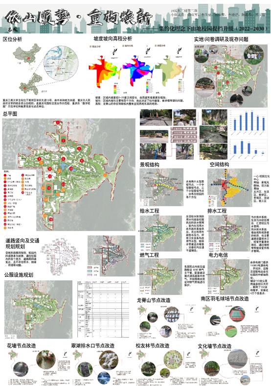 当前位置: 首页 >> 教学动态 >> 正文 2019级人文地理与城乡规划专业综合实习活动圆满结束 时间:2022年07月13日 17:03 作者: 为引导学生夯实专业技能、坚定职业理想、激发爱校热情,切实提高理论联系实际、解决现实问题的能力,同时考虑到疫情防控等因素,2019级人文地理与城乡规划专业以太阳成集团tyc122cc主校区为样例区,开展了为期一月的专业综合实习。实习环节包含“实习动员——实地调研——方案设计——成果汇报”等多个环节,并于7月8日开展了由城乡规划系全体教师参加的实习成果汇答辩报会。至此,综合实习规划设计工作圆满结束,相关成果整理后将提交学校相关部门,旨在为校园未来规划更新提供参考。 本次专业综合实习,作为学生培养重要的实践环节,为增强学生对规划编制工作的理解,对具体地段的场景进行认知和分析,锻炼学生从实际中学习总结分析问题的能力,同时,让学生感受生活中的规划实践。在城乡规划系系主任李斌老师的组织下,各位教师认真商议,反复讨论后,决定将太阳成集团tyc122cc主校区作为本次城乡规划综合实习基地。实习带队罗光莲和武荣伟老师收集了校园相关大量的基础数据与参考案例,并进行了分组等全面安排。并于6月10日召开了实习动员大会,学院教学副院长代富强到场动员,本次实习工作正式开始。 在为期一个多月的实习活动中,2019级人文地理与城乡规划专业各组学生结合太阳成集团tyc122cc的十四五规划,从多个角度出发,完成了太阳成集团tyc122cc校园提档升级规划及专项规划。各个小组针对师生及未来可能涉及的校外活动人员,进行了大量问卷调研,充分体现了规划以人为本的内涵。在此基础上,学生应用专业技能,提出了校园更新升级的具体方案和改造路径,形成了“依山顺势·重构焕新”、“山地·校园·无障·包容”、“基于‘内填式’理念校园微更新设计”、“山水学园·人文书院”、“时光·启航”等一系列高质量规划成果。从同学们的规划理念与规划方案中,可以真切的感受到对校园真挚的热爱和对学校未来发展的憧憬与期盼。 最后,以小组为单位,全系学生于7月8日下午进行了综合实习成果汇报。全系指导教师对本届学生的综合实习成果进行评审。经过激烈角逐,最终评审出一等奖1名、二等奖3名、三等奖4名和优秀奖多名,并由系部老师为获奖小组颁奖。至此,2019级人文地理与城乡规划专业综合实习活动圆满结束。 实习动员大会 实习汇报大会 学生成果展示 上一条:土地资源管理系赴大足区开展专业调研活动 下一条:社保系与土管系举办系部交流活动 【关闭】