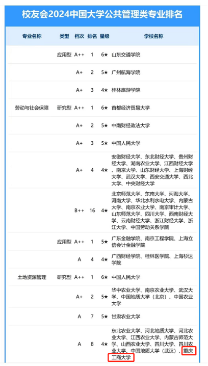 当前位置: 首页 >> 教学动态 >> 正文 学院土地资源管理专业在2024年第三方全国专业评估中继续获评A级专业 时间:2024年04月22日 16:44 作者: 王兆林 日前“校友会”发布了2024年全国专业建设排名情况,在年度专业评估中,土地资源管理专业达到4星水平A类专业水平。这系本专业连续两年获评A类专业等级,位居重庆市同类专业排名首位。近年来在该评估机构中,学院土地资源管理专业排名一直稳居全国B类水平以上,2021年为B级、2022年为B++级、2023年为A级。另外,本专业在重庆市教委组织的2023年专业监测评估中也是获批A类专业,位居全市高校所有公共管理类专业的前11%。 近年来,我校土地资源管理专业,以“科研创新”和“以赛促学”为导向,不断强化教师科研能力与学生“导师制”培养模式。专业学科竞赛和科学研究不断获得突破,近三年在全国专业竞赛中获得各类奖励数十项;获得各类市级教学质量,如一流课程、讲课比赛、教改课题等奖励10多项。本专业2019年获批重庆市一流专业,2020年获批国家级一流专业建设点,2023年获批市级优秀基层教学组织案例,系目前重庆市唯一的土管国家级一流专业建设点。 上一条:【审核评估】劳动与社会保障系召开专业建设指导分委员会会议暨开展本科教育教学节“六说”活动 下一条:122cc太阳集成游戏召开2024年第三次本科教学工作例会暨首届“教学节”专题会 【关闭】