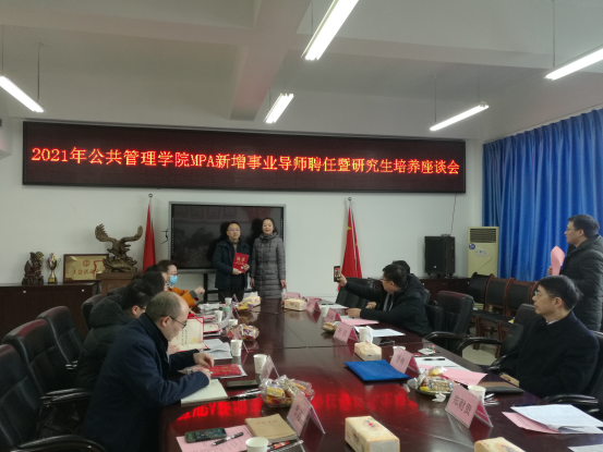 当前位置: 首页 >> 研究生教育 >> 工作动态 >> 正文 我院召开MPA新增事业导师聘任暨研究生培养座谈会 时间:2022年01月10日 09:18 作者: 杜挺 我院召开MPA新增事业导师聘任暨研究生培养座谈会 为认真总结我院MPA教育工作,推进MPA教育改革和高质量发展,提升研究生培养质量,1月9日上午,学院在81004会议室召开MPA事业导师座谈会。学院领导班子成员、校内MPA学业导师,以及重庆市社科联副主席潘勇,重庆博众城市发展管理研究院院长阎占斌等校外11名MPA事业导师参加了座谈会。会议由副院长余建华主持。 首先,李孜院长代表学院对各位事业导师的到来表示了欢迎,并简要介绍了MPA教育中心近期的发展概况与战略部署,总结了近一年来,MPA教育中心与事业导师的交流合作成果,并高度赞扬了学院MPA发展历程中事业导师发挥的重要作用。紧接着,余建华副院长宣读了我院增列MPA事业导师名单,并由李孜院长为彭劲松、李乔、李妍均等8位校外事业导师们颁发了聘书。 随后,各位校外事业导师在会议上积极建言献策。重庆市社科联副主席潘勇对学院校外导师工作表示了赞许。他提出了三点建议:一是要定期与学生进行交流,在选题、开题、调研等关键环节给学生把好关,确保学生高质量发展。二是鼓励学生多写、多练,从小论文着手循序渐进地推动学位论文的完成。三是建立师生微信群,加强师生互动。重庆市社科联彭劲松所长高度肯定学院对事业导师工作的重视,认为事业导师这项工作责任重大、使命光荣,并从选题把关、联合培养、定期交流等方面提出了宝贵建议。重庆市卫健委吴长文处长从自身工作实践出发,提出事业导师要大力倡导MPA研究生深入基层,“从严从实”地抓好调查研究,并立足国家需求做好成果转化。其他校外事业导师还对如何加强校外导师的作用、更好地开展校内外合作等方面提出了许多独到见解。 最后,李孜院长再次对校外事业导师的到来及其给予122cc太阳集成游戏的大力支持表示衷心的感谢,诚挚地邀请事业导师到学院开展专题讲座和课堂讲座,并让学生尽可能地参与到事业导师的科研项目和社会实践中去,进一步提升我院MPA研究生的专业能力、职业能力和应用能力。 此次座谈会,不仅为我院“双导师制”的落实与完善指明了方向,还加强了校内外导师的沟通了解,有利于充分达到培养实践型、复合型、应用型人才的目标,提高人才培养质量。 上一条:首届MPA研究生学位论文预答辩顺利结束 下一条:我院2020级MPA研究生学位论文二次开题答辩如期进行 【关闭】